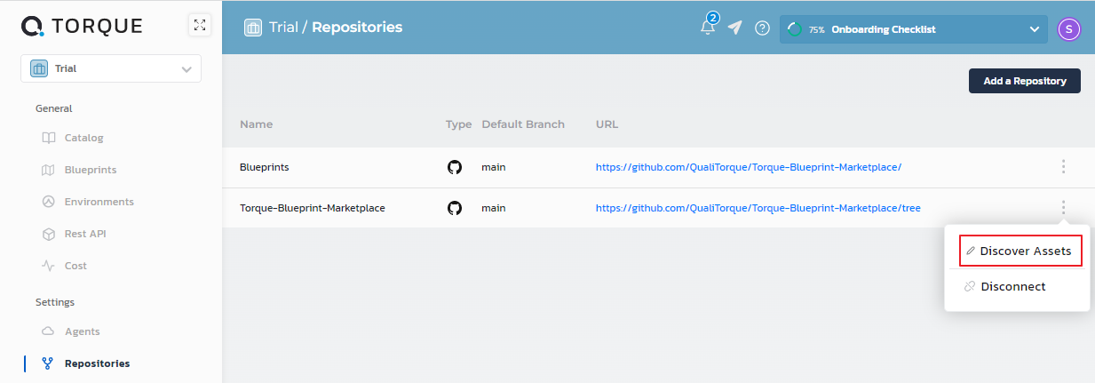 - When connecting a repository containing blueprint files to Jarvis, it is possible to reference a branch of the repository and not its main, allowing designers the ability to test changes to blueprints before pushing them to the main/master branch and affecting the production catalog.