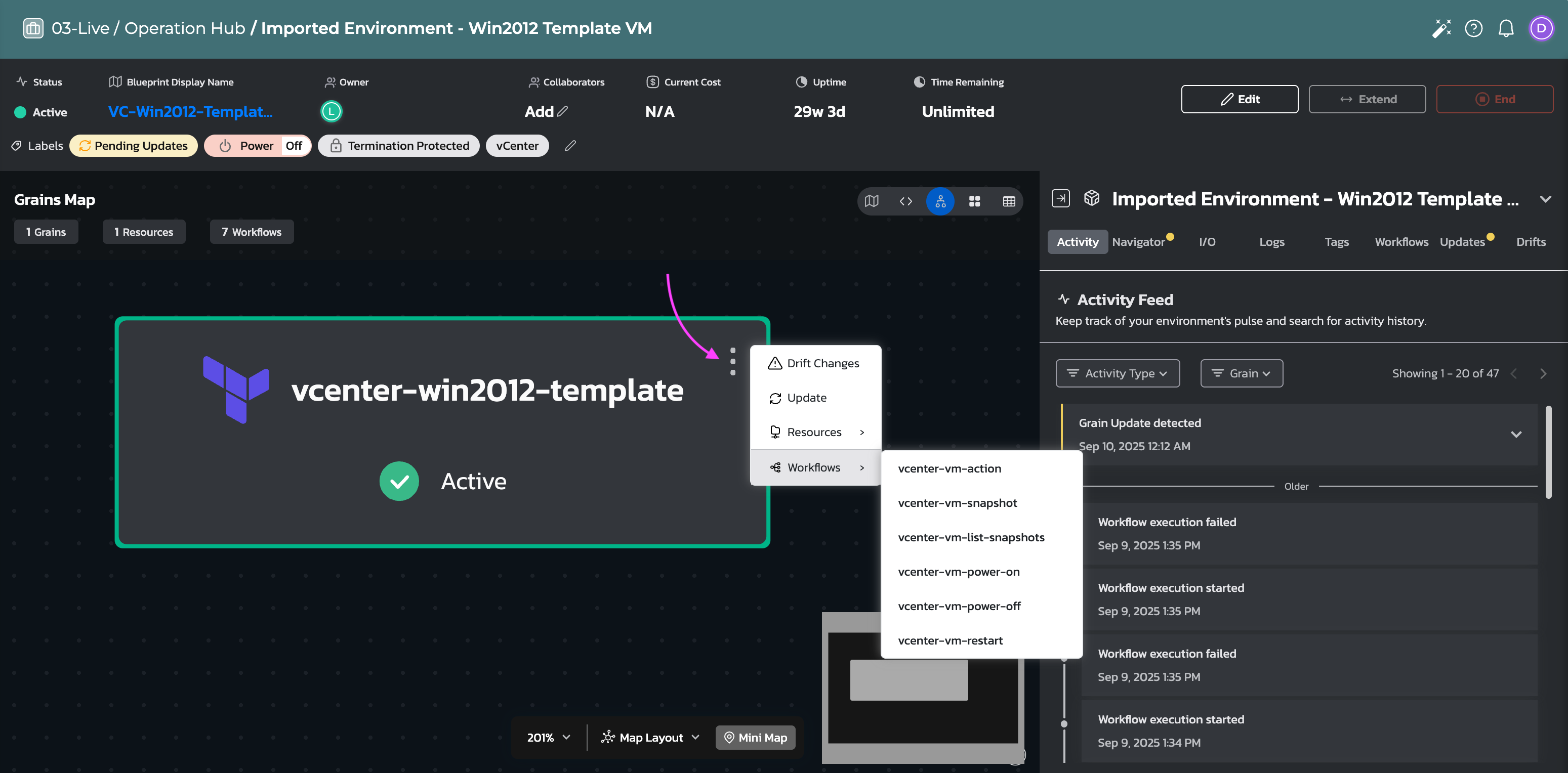 - 🎯 Actions - Execute immediate operations on specific resources (power on/off, restart, connect)